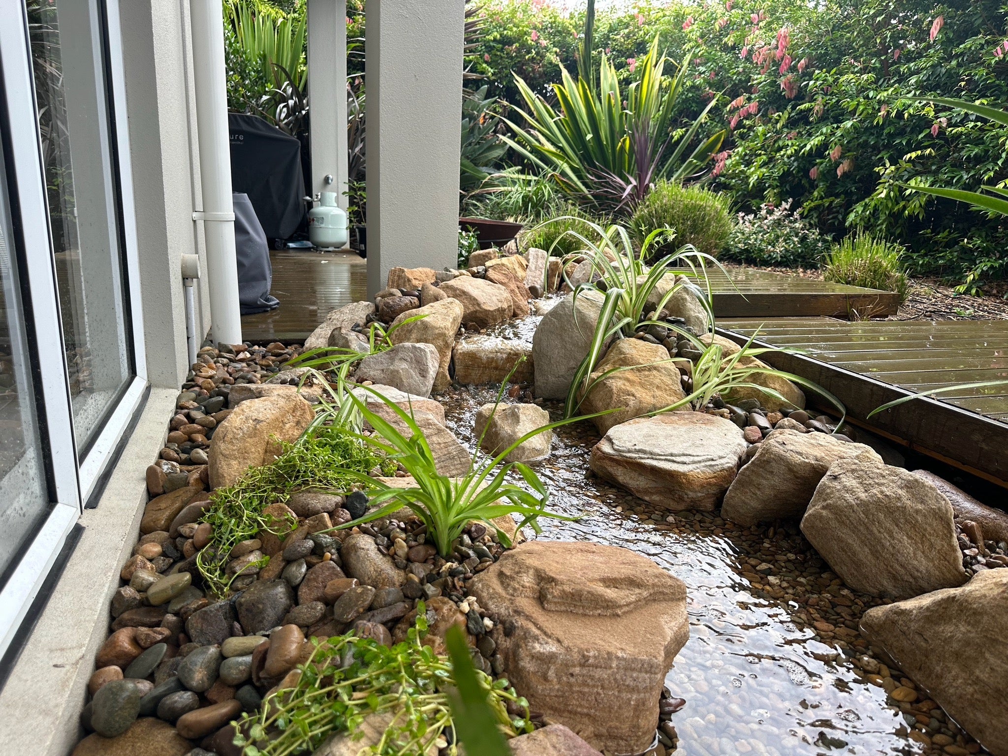“We were blown away by the artistry and hard work Lisa and David put in to create our customised “creek” in our small bush garden fronting the street. Within a few days it had been colonised by frogs, and its lovely at night hearing the different species singing (cracking) a chorus. The sound of running water is very relaxing and all of our visitors comment on the beautiful feature. Thanks for a great job Lisa and Dave!